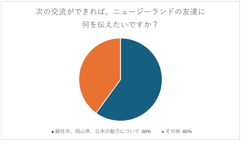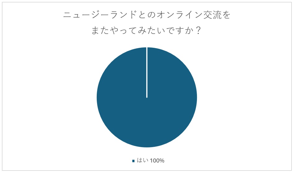 2025年3月に、阿曽小学校を通して「ニュージーランドのトゥイア・バーンサイド小学校とのオンライン授業について」のアンケートを実施しました。結果は下のグラフの通りです。