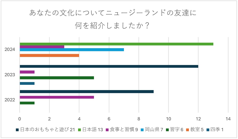 2025年3月に、阿曽小学校を通して「ニュージーランドのトゥイア・バーンサイド小学校とのオンライン授業について」のアンケートを実施しました。結果は下のグラフの通りです。